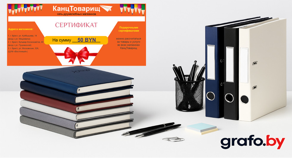 Вам нужны бизнес-подарки для руководителей? Есть Grafo.by. Вам срочно нужна бумага по очень низким ценам? Мы рядом. Нужны хозтовары и инвентарь для уборки, к вам едет ревизор? Не ищите отдельный магазин хозтоваров — есть Графо! У вас скоро отраслевой семинар, а нужного количества одинаковых ежедневников нигде не найти? А может, вы ищете материалы для новомодных скрапбукинга и декупажа? Товары для студентов и школьников? Все это тоже есть у нас на сайте!