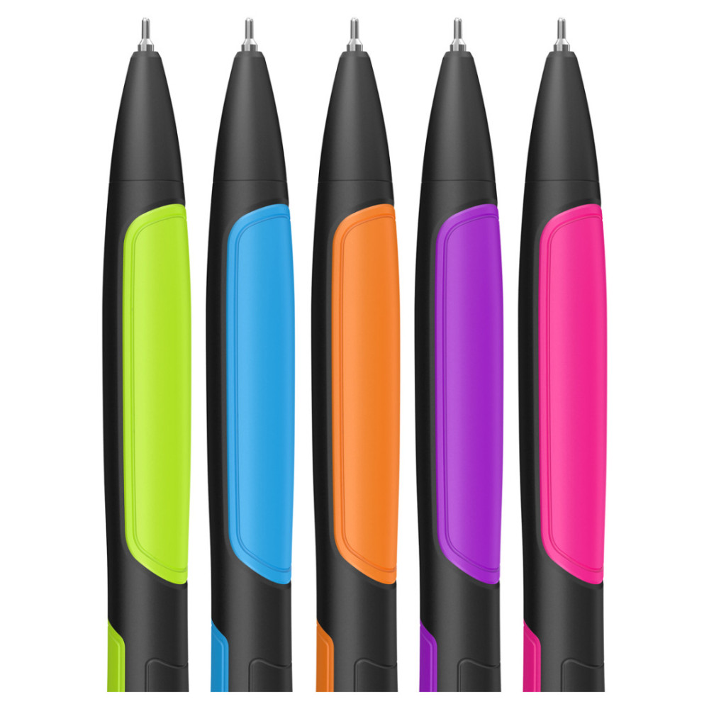 Авторучка шариковая Berlingo "Color Zone-2" с клипом одноименной суперуспешной кросс-продуктовой серии Color Zone в новой эксклюзивной форме, разработанной компанией «Берлинго». Прорезиненное покрытие черного с яркими неоновыми вставками корпуса и утолщение в зоне захвата ручки обеспечивают высокий уровень комфорта при ее использовании. Уникальная запатентованная технология Smart Ink, обеспечивающая лёгкое и приятное письмо за счёт использования чернил пониженной вязкости, инновационных материалов шарика, пишущего узла и его специальной конструкции, усовершенствована AFIT наконечником (от англ. "Anti-Fiber Intake" – препятствующий попаданию микро-частиц бумаги). Инновационные компоненты, используемые для изготовления шарика пишущего узла (карбид вольфрама), обеспечивают долговечность и стабильность качества письма. Диаметр пишущего узла составляет 0,7 мм, толщина линии письма – 0,5 мм, а длина письма – 600 м.