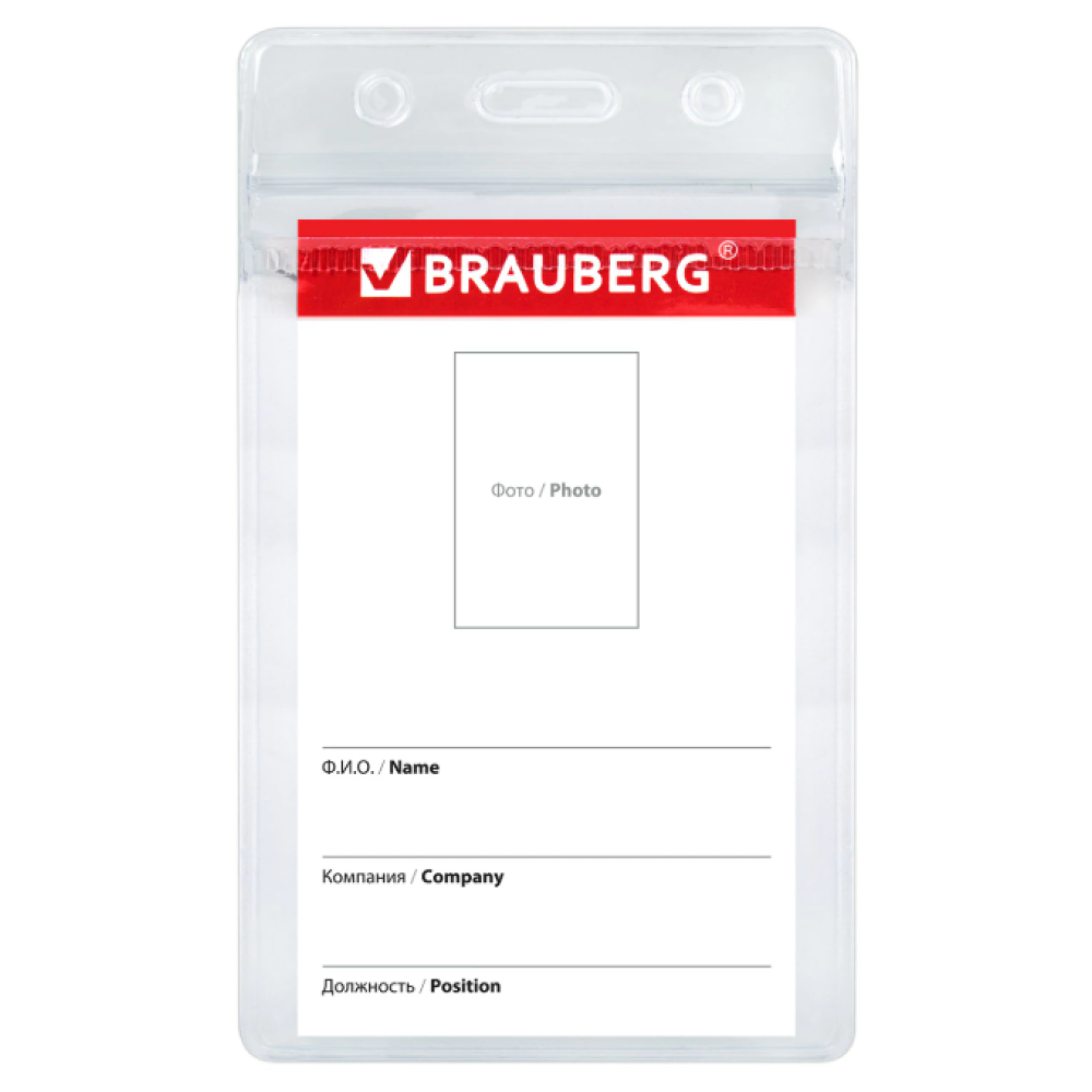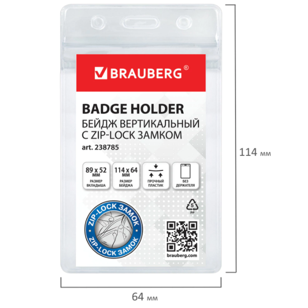 Бейдж вертикальный Brauberg с ZIP-LOCK-замком - 89*52 мм