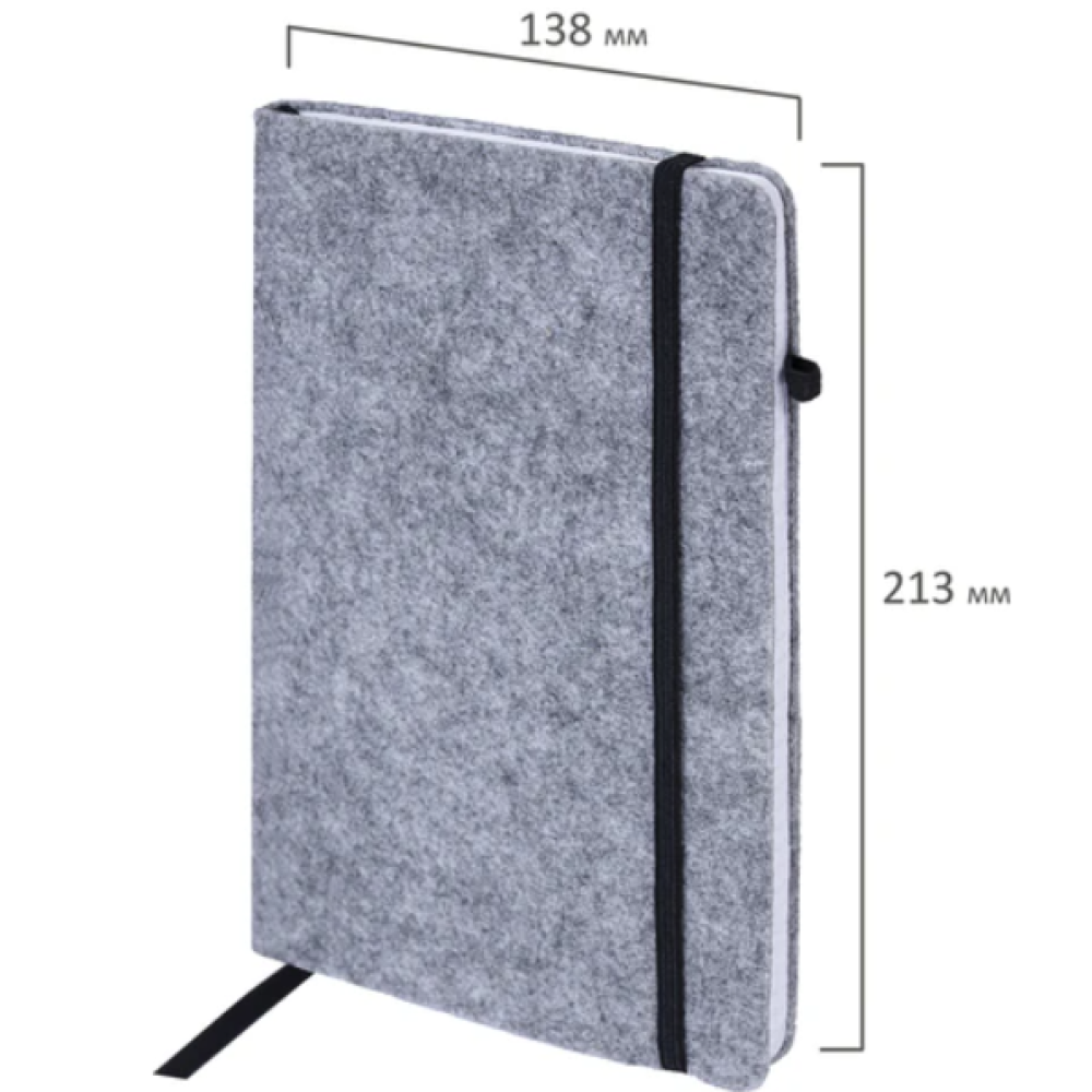 Блокнот BRAUBERG "Voylok" выполнен в оригинальном стиле. Подойдет каждому современному человеку для ведения различного рода записей. Мягкая обложка изготовлена из войлочного материала, очень тактильного на ощупь. Имеет закругленные уголки. 80 листов позволят зафиксировать большой объем информации. Линовка блока в клетку (5х5 мм) дает возможность аккуратно заполнить цифровые значения, а также нанести чертежные зарисовки. Внутренний блок выполнен из офсета белого цвета плотностью 70 г/м2. Снабжен резинкой-фиксатором, благодаря чему блокнот не откроется в сумочке или портфеле, и листы не помнутся. Дополнением является закладка-ляссе, с помощью которой при необходимости можно быстро открыть нужную страницу, а также держатель для ручки, повышающий функциональность блокнота. Формат А5 (138х213 мм) позволит владельцу поместить его в кейс или сумку малых габаритов.