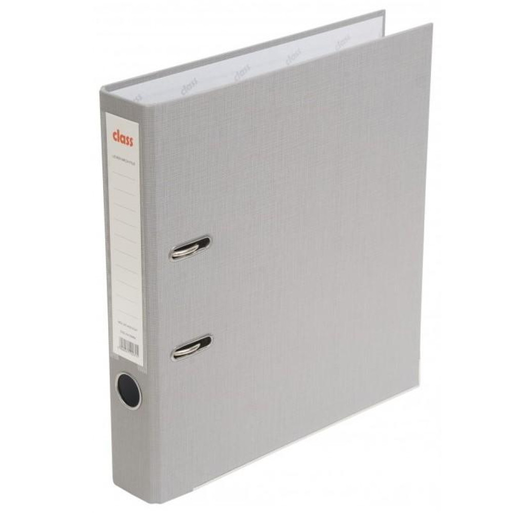 Папка-регистратор Class изготовлена из плотного картона толщиной 2 мм., с внешней стороны покрыта защитным слоем поливинилхлорида (ПВХ). Формат А4. Ширина корешка - 50 мм. На корешке имеется карман со сменной маркировочной этикеткой и кольцо для удобного захвата. Нижние края защищены металлическим кантом.