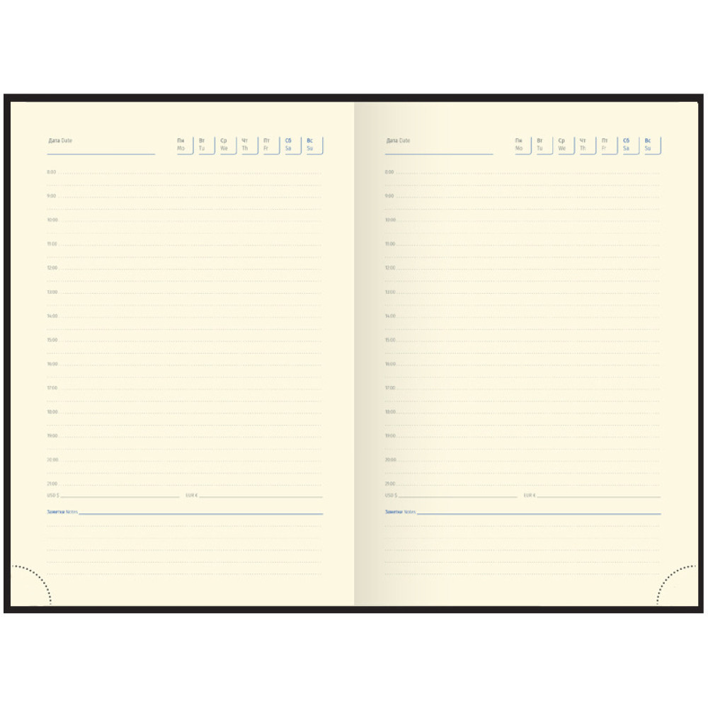 Недатированный ежедневник Delucci формата А5 из первоклассной фактурной экокожи и поролоновой прослойкой – идеальный презент для руководителя. Коричневая обложка прошита двойной строчкой, её дополняют золотые металлические уголки и необычный золотой срез блока. Внутренний блок состоит из 160 листов кремовой бумаги повышенной плотности 100 г/м² с пантонной печатью в 2 краски.Перфорированные уголки и 2 закладки-ляссе сделают использование комфортным. Внутри располагается справочный материал, географические карты на форзацах, отрывные заметки и бланки-извещения о ДТП. 3 комплекта стикеров станут приятным подарком.