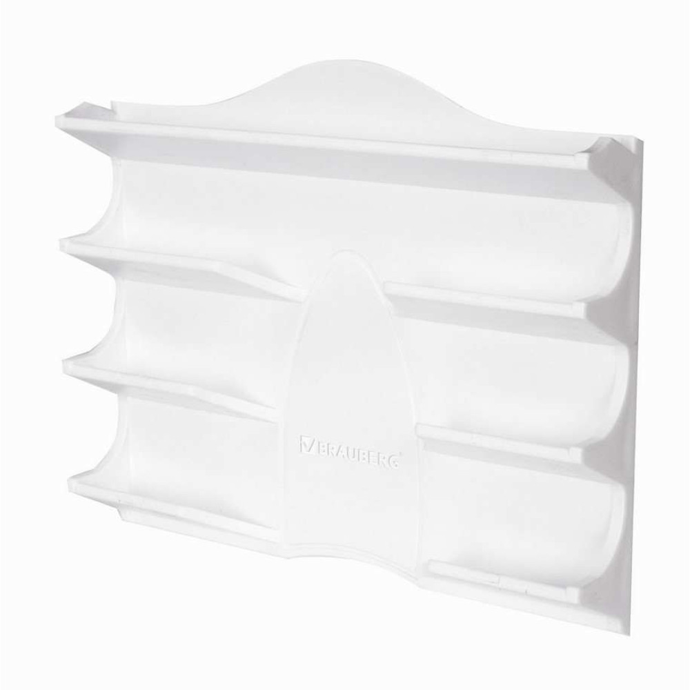 Держатель магнитный Brauberg "Standard" предназначен для удобного хранения 4-х маркеров на доске одновременно. Маркеры не входят в комплект. Модель подходит для размещения на любой металлической поверхности. Надежно фиксируется с помощью двух широких магнитов на тыльной стороне. Держатель с ячейками предназначен для горизонтального хранения фломастеров. Наклоненные внутрь полочки имеют ограничительные бортики по бокам, которые предотвращают падение размещенных письменных принадлежностей. Изготовлен из акрилового пластика белого цвета, который является легким, но в то же время прочным материалом. Изделие имеет компактные размеры (130*152 мм) и продуманную эргономичную конструкцию. В углубления поместятся фломастеры разной толщины. Выемки для пальцев обеспечивают легкий доступ к предметам и более удобную эксплуатацию.