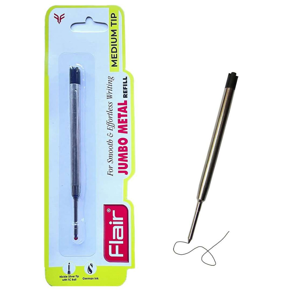 Объемный металлический шариковый стержень Flair "Jumbo" черный, длиной 98 мм, с немецкими чернилами на масляной основе, для легкого скользящего письма.