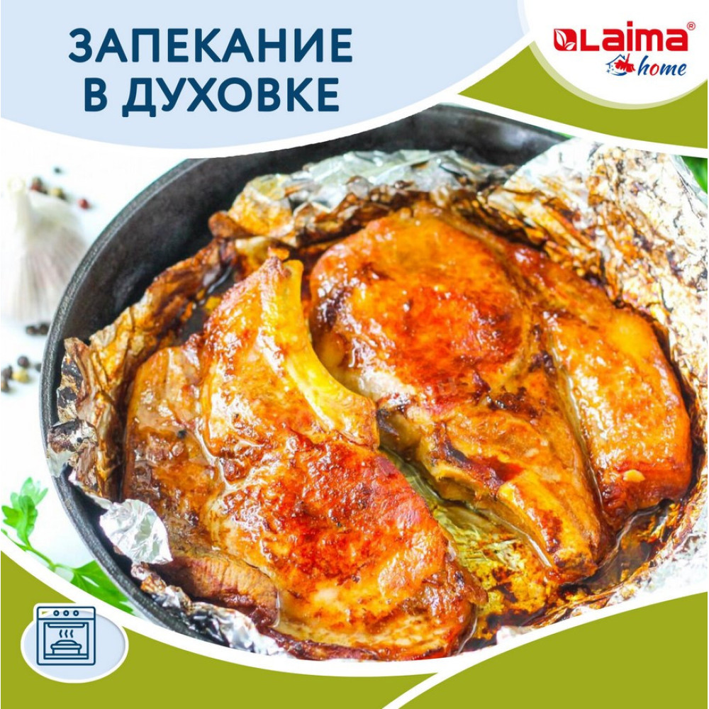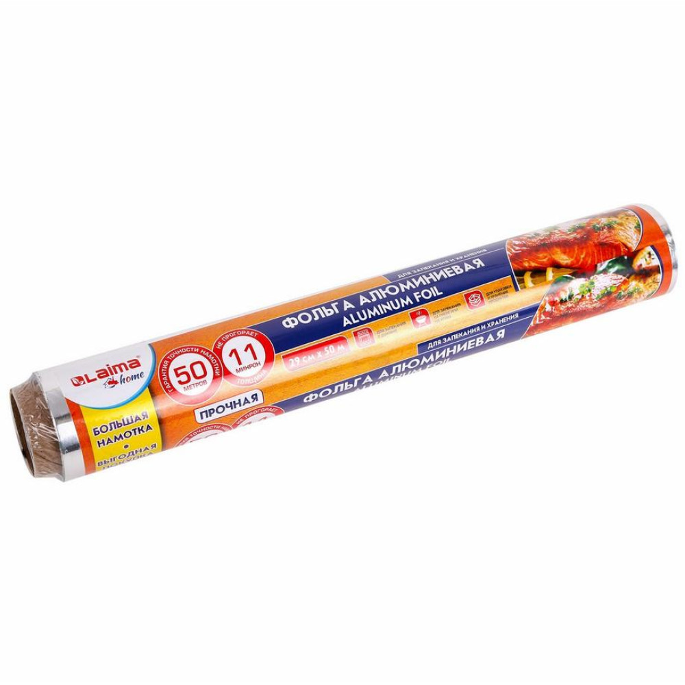 Фольга пищевая алюминиевая Laima для приготовления, упаковки, хранения и замораживания продуктов. Изделие имеет достаточно широкую сферу применения и отличается отсутствием токсичности и высокой устойчивостью к воздействию различных составов, благодаря чему не взаимодействует с продуктами питания и другими веществами. Она является надежным помощником на кухне и обеспечивает максимальное удобство и надежность при приготовлении любых блюд. Прочная алюминиевая фольга длиной 50 м и шириной 29 см имеет толщину 11 мкм, что делает ее стойкой к сминанию и сохраняет все вкусовые качества продуктов, предотвращая исключая их пригорание и прилипание к посуде. Кроме того, использование такого материала в процессе готовки препятствует пересыханию и подгоранию еды, помогая создавать сочные блюда. Также она защищает от попадания ультрафиолетовых лучей и посторонних запахов на пищу во время хранения и дольше сохраняет ее в свежем виде.