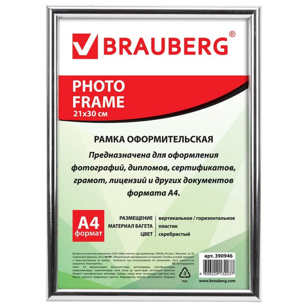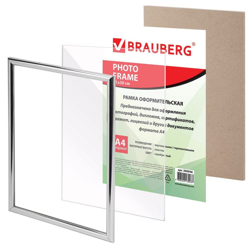 Фоторамка Brauberg HIT 2 для оформления фотографий, дипломов, сертификатов, грамот, лицензий и других документов формата А4 (21×30 см) будет гармонично смотреться в любом интерьере — дома и офисе, учебных учреждениях и магазинах, салонах и предприятий и др. Изготовлена из пластика, цвет – серебристый, вставка выполнена из стекла. С помощью крепежей изделие можно подвесить как горизонтально, так и вертикально. Багет шириной 12 мм. Материалом подложки служит плотный картон, который позволит избежать в дальнейшем искажения и деформации документа, создаст оптимальную плотность прилегания. Защищающая термоусадочная пленка обеспечит безопасную транспортировку и возможность обойтись без царапин и сколов.