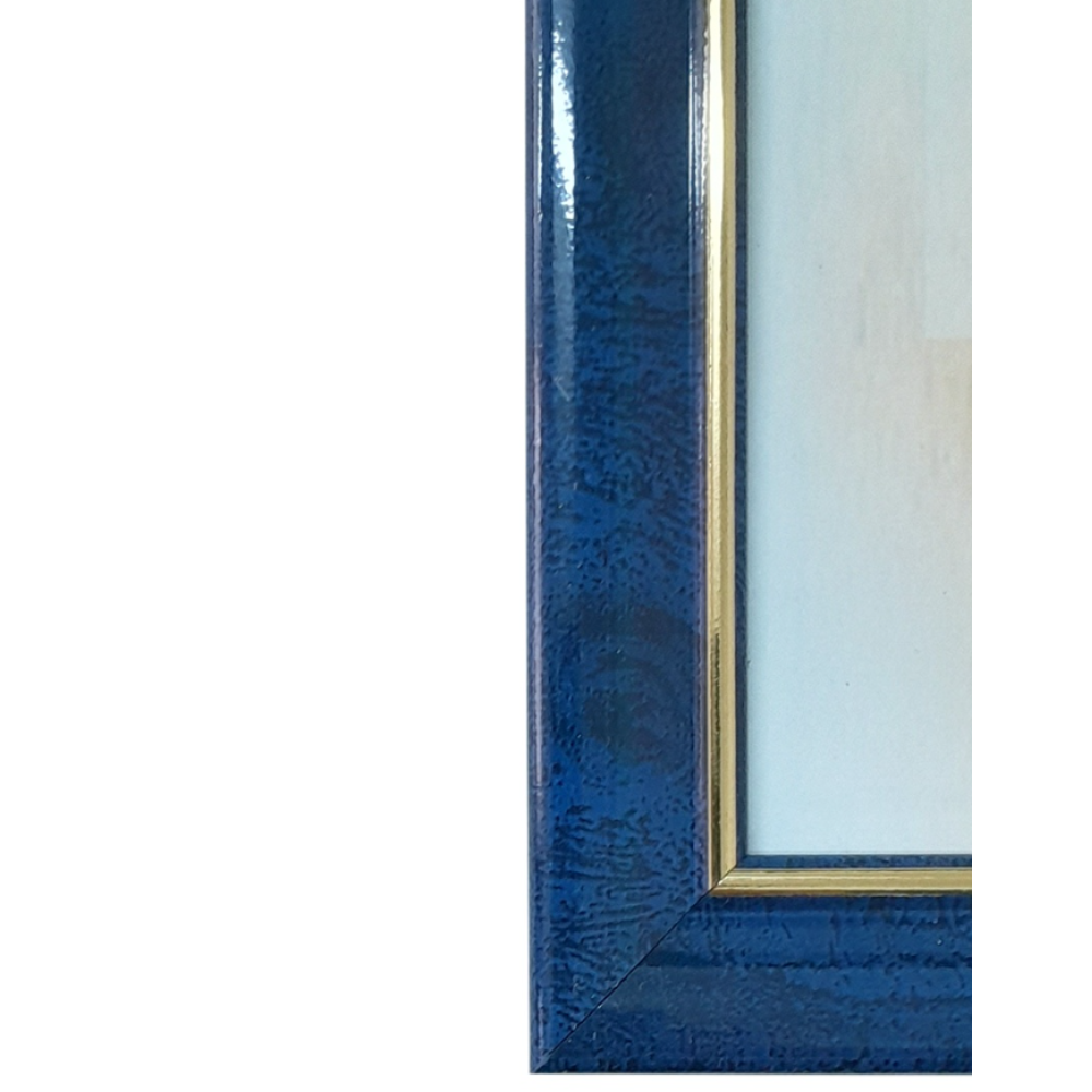 Рамка пластиковая со стеклом, 21×30, синий с позолотой, для фотографий А4 формата, крепится только на стену.