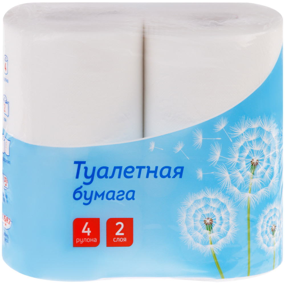 Бумага туалетная OfficeClean - 2х слойная - 4 рулона - Белая