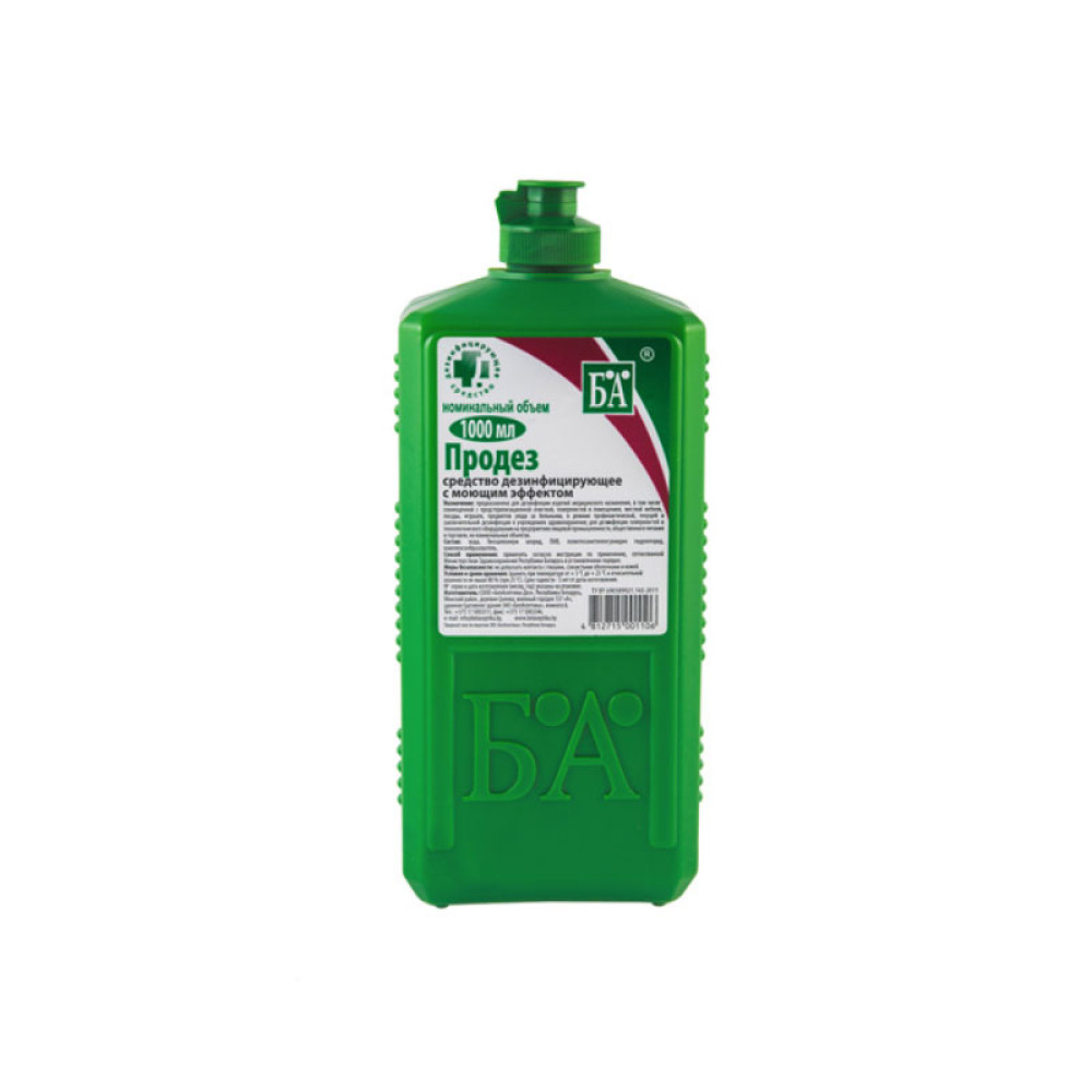Дезинфицирующее средство Продез с моющим эффектом. Обеззараживает объекты способом протирания. Можно проводить в присутствии людей. Рабочие растворы средства можно применять многократно в течение 15 дней. Сохраняет свои свойства при замораживании и размораживании.