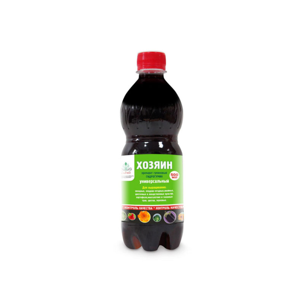 Гидрогумин "Хозяин". Препарат, содержащий гуминовые вещества, накапливает химические элементы и энергию и отдает их постепенно живым организмам по мере их потребления, сохраняя тем самым необходимый запас для следующих поколений. Этим он существенно отличается от многих минеральных соединений.