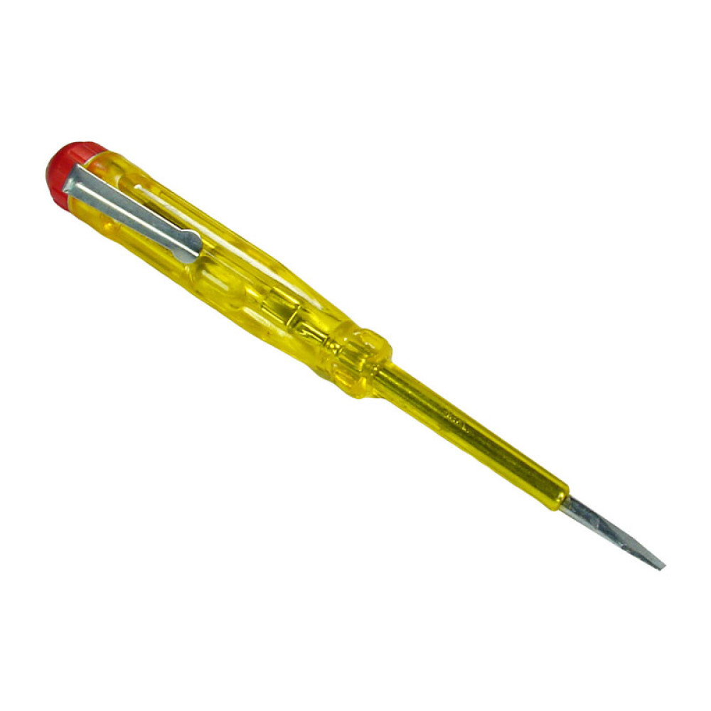 Отвертка-индикатор (указатель напряжения). Тип наконечника: шлиц. Стержень изготовлен из стали. Ручка пластиковая. Картинка может отличаться от оригинала!