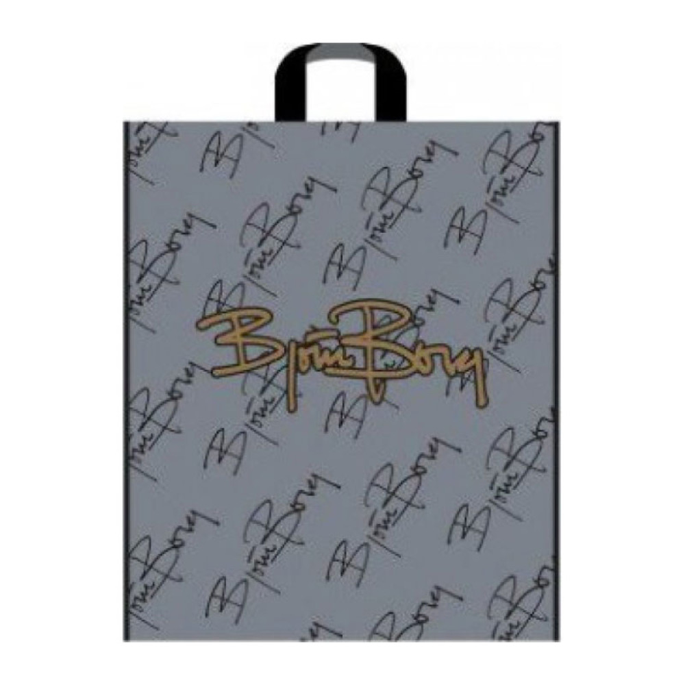 Прочный полиэтиленовый пакет с петлевыми ручками Артпласт "Борг", декорированный принтом.