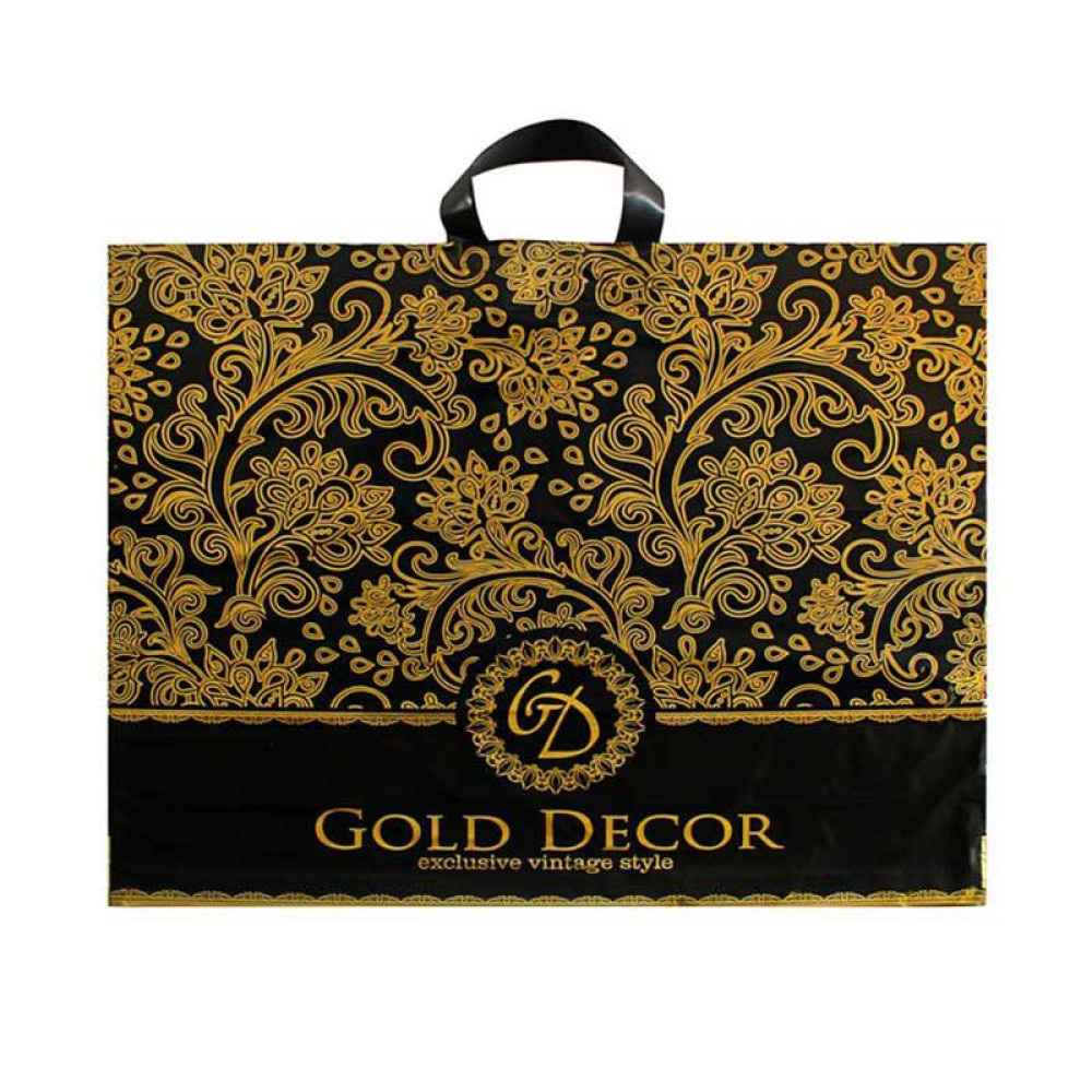 Полиэтиленовый пакет с петлевыми ручками Голд декор, прочный с оригинальным рисунком.