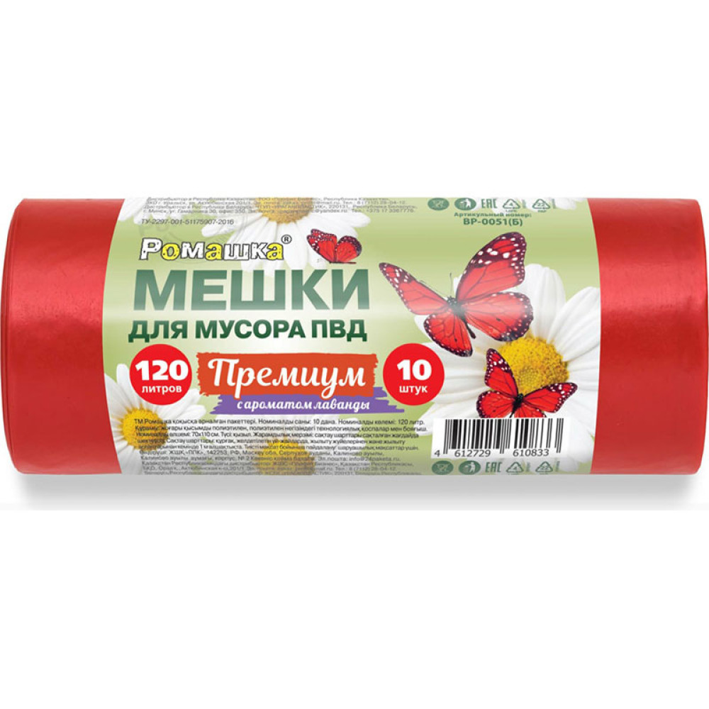 Пакеты для мусора сверхпрочные Премиум "Ромашка" изготовлены из полиэтилена высокого давления, красного цвета, с ароматом лаванды. Используются для хозяйственных нужд в домашнем хозяйстве, в офисе, в