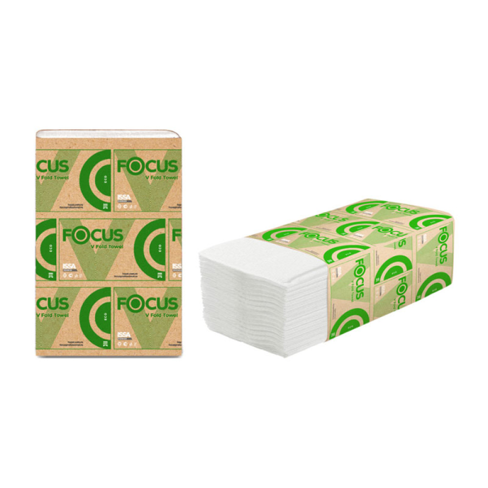 Полотенца бумажные Focus Eco листовые V-сложенные зигзагом.