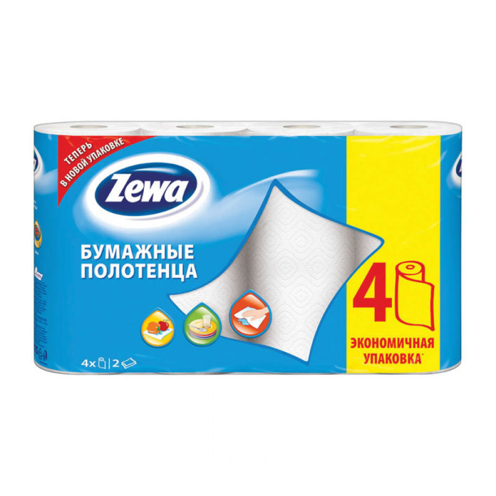 Полотенца бумажные в рулоне Zewa - 4 рулона - Белые