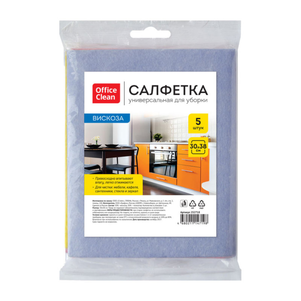 Протирочные салфетки из вискозы OfficeClean для сухой и влажной уборки. Отлично впитывают влагу. Износоустойчивые.