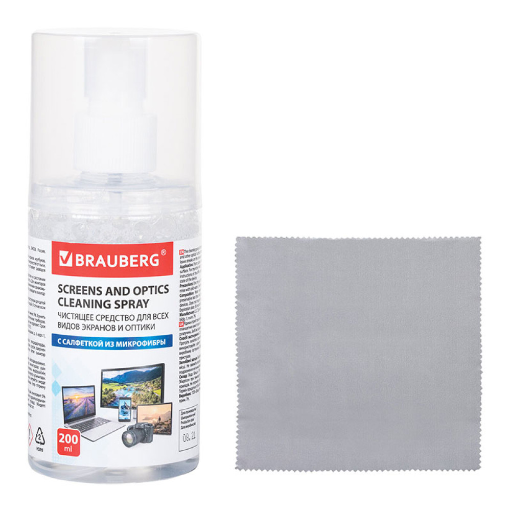 Спрей чистящий Brauberg с салфеткой - Для экранов - 200 мл