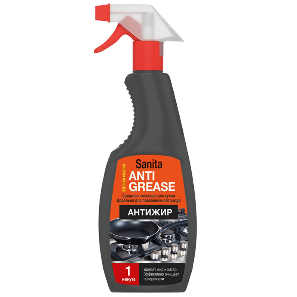 Спрей чистящий для кухни Sanitar "Антижир" быстро и эффективно удаляет жирные пятна, нагар, налёт, въевшуюся грязь с любых кухонных поверхностей: плит, кухонной бытовой техники, вытяжек, духовых шкафов. Быстрый эффект не только на горизонтальных, но и на вертикальных поверхностях, а так же в трудно доступных местах. Обеспечивает чистоту и сияние. Экономичен в использовании.