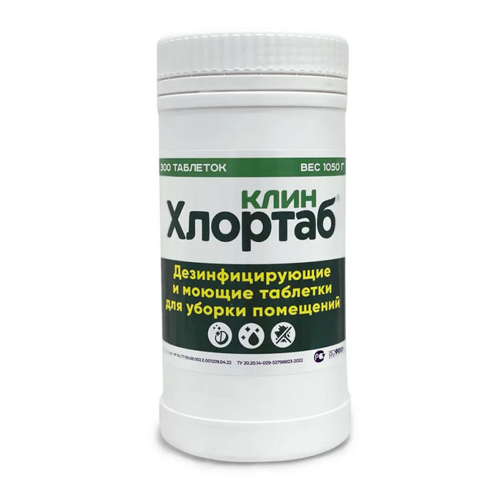 Средство дезинфицирующее таблетки Хлортаб Клин для дезинфекции и мытья поверхностей, тары, оборудования, белья, посуды (в т.ч. лабораторной), игрушек и обуви из резины и прочего. В раствор можно добавлять моющее средство. Обработку поверхностей в помещениях способом протирания можно проводить без средств защиты органов дыхания (рабочий раствор до 0.06%) и в присутствии пациентов (рабочий раствор до 0.015%). Рекомендуется для применения в быту в строгом соответствии с инструкцией. Дезинфекцию проводить обязательно в перчатках. Активность в отношении грамотрицательных и грамположительных бактерий, вирусов (полиомиелита, гепатитов, ВИЧ, аденовирусов и др. возбудителей), грибов рода Кандида, Трихофитон.