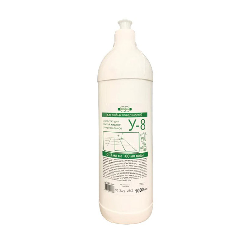 Средство универсальное жидкое У-8 без красителей для проведения ежедневной уборки. Высокие пенообразование и моющая способность. Эффективно в воде с высокой жесткостью. Нейтральный уровень рН (1%) 6.0-9.0. Используется средство для мытья любых загрязненных поверхностей, кухонной мебели и изделий из всех видов водостойких материалов. Обеспечивает качественное удаление грязи, жировых, масляных и других минеральных загрязнений с поверхностей.