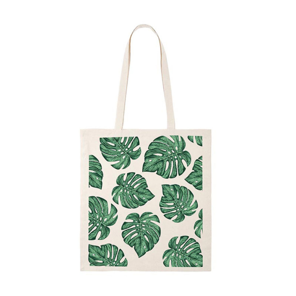 Вместительная сумка-шоппер Арт и Дизайн "Monstera" бежевого цвета из 100% хлопка.