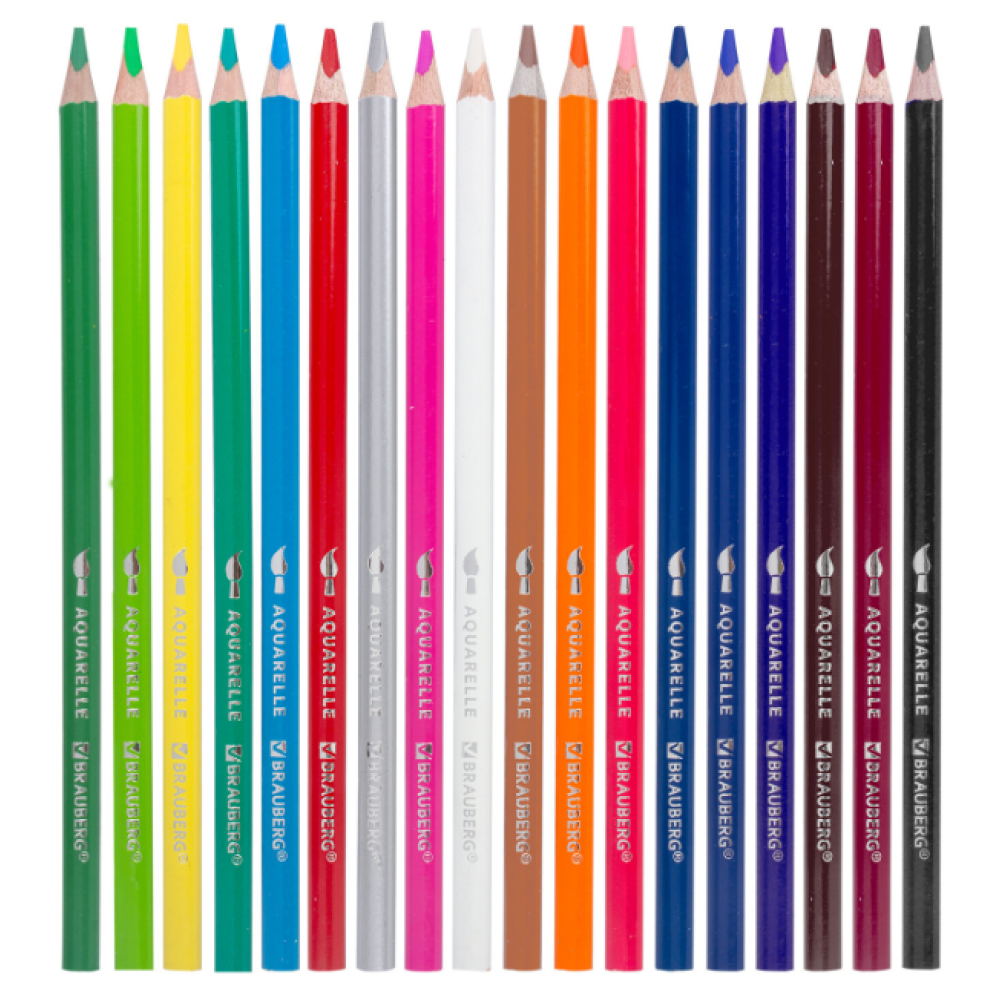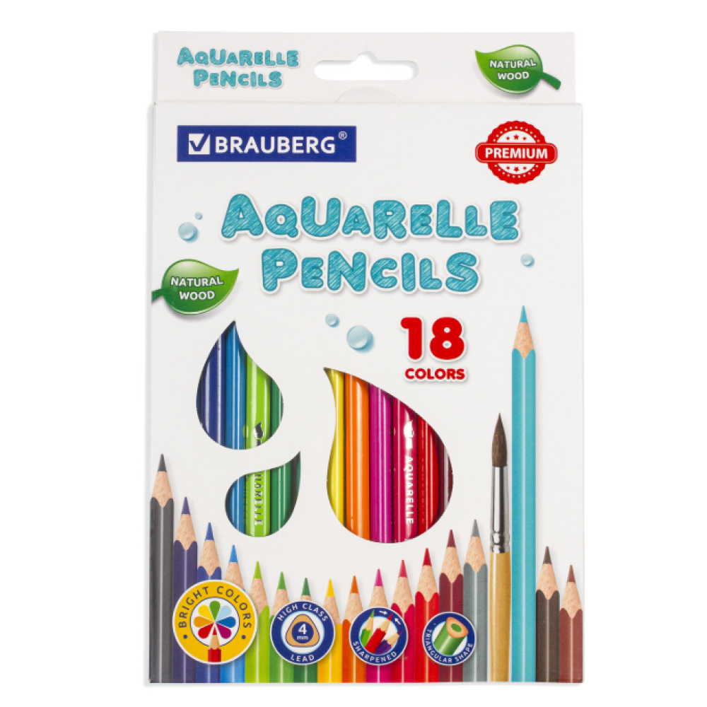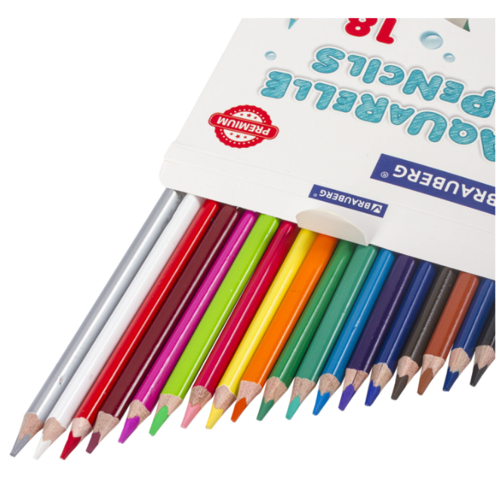 - Набор акварельных карандашей Brauberg PREMIUM AQUARELLE - утолщенный грифель - 18 цветов - Трехгранные