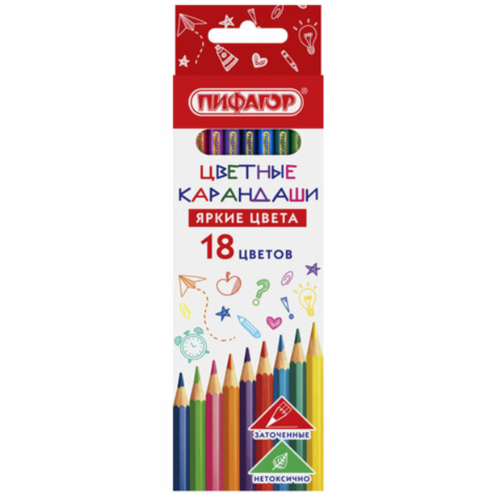 Набор цветных карандашей Пифагор Эко Классик - 18 цветов - Шестигранные