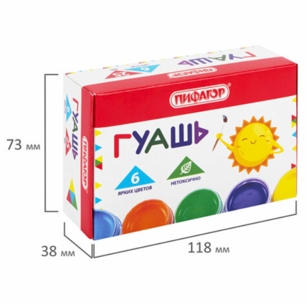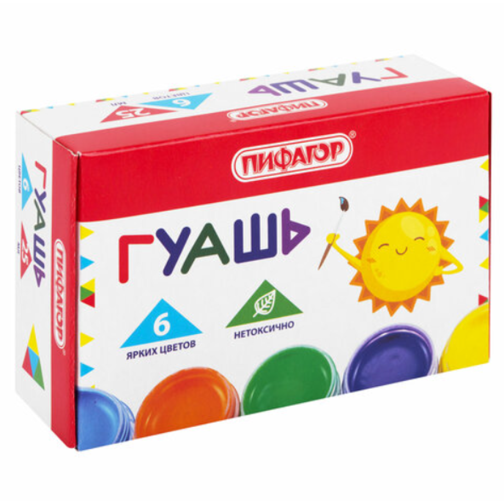 Гуашь Пифагор Солнышко - 6 цветов - 25 мл