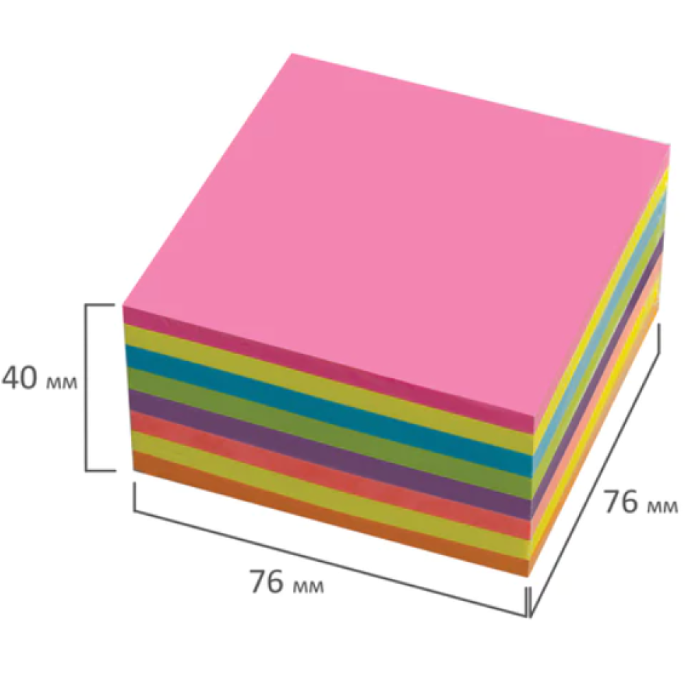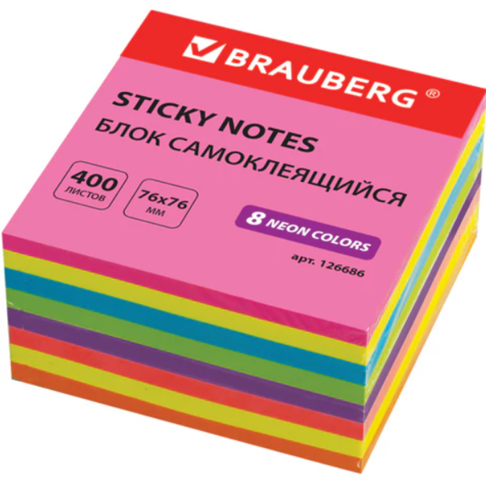 Липкий блок для заметок Brauberg Неоновый - 76*76 мм - 400 листов - 8 цветов