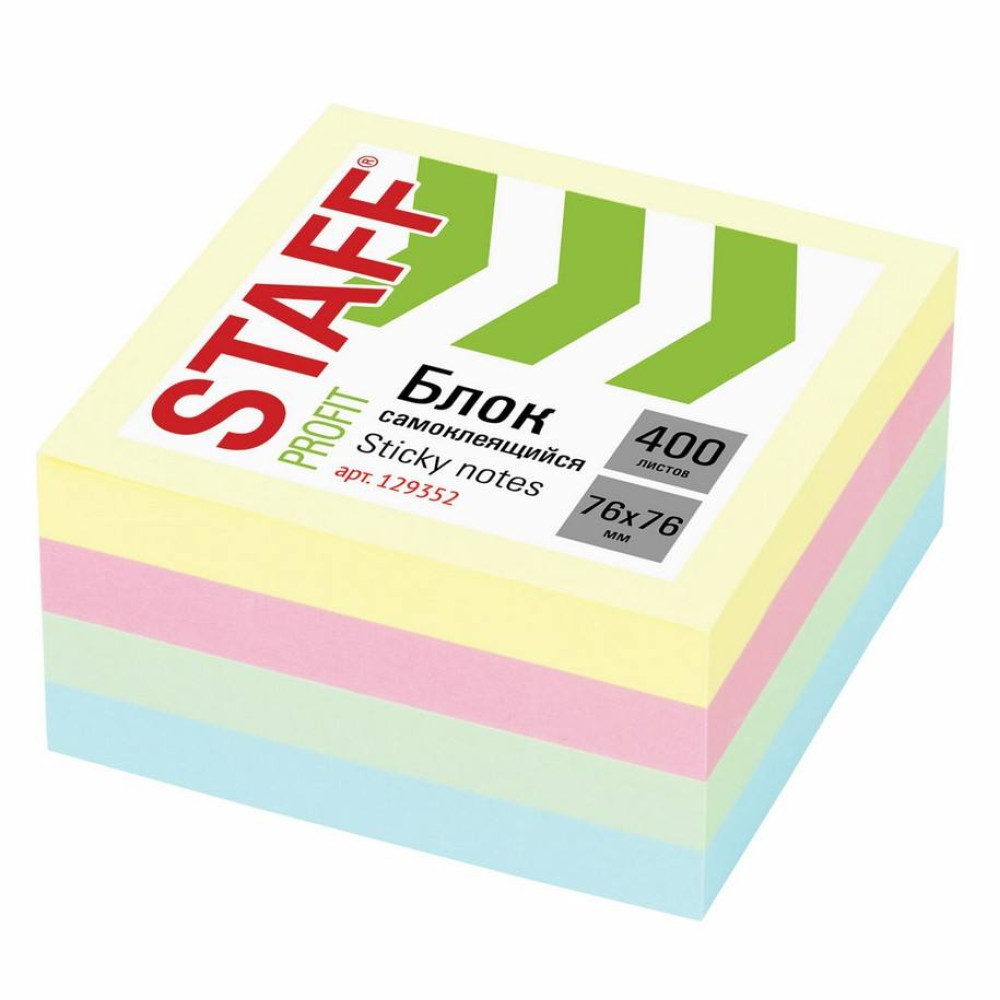 Липкий блок для заметок Staff - 76*76 мм - 400 листов - 4 цвета