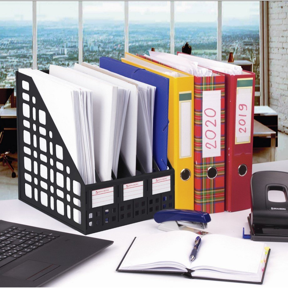 Лоток вертикальный Brauberg "Maxi Plus" для хранения каталогов и папок позволит поддержать порядок на рабочем месте и сэкономит пространство на столе и в шкафу. Выполнен в черном цвете с шестью отделениями. Предназначен для хранения каталогов и папок. Представляет собой прочную устойчивую сборную конструкцию с сетчатыми боковыми стенками.