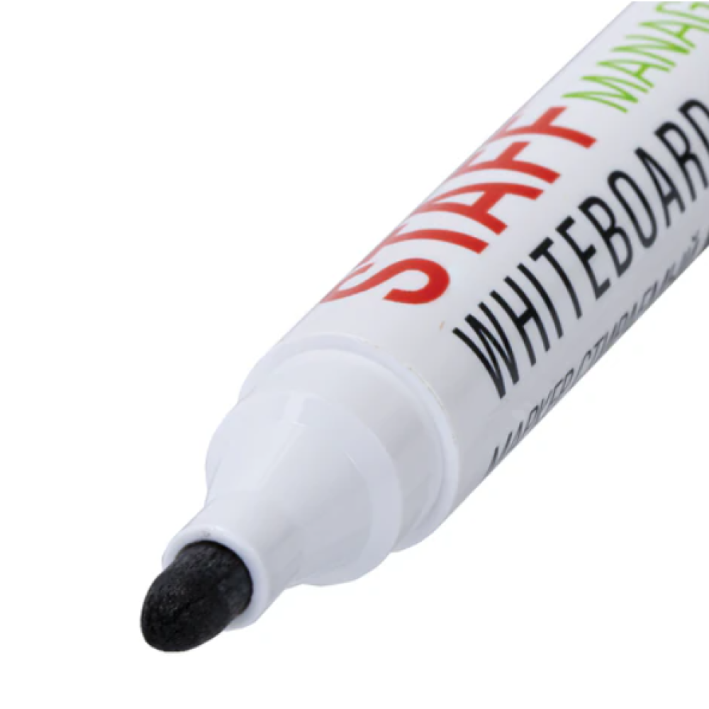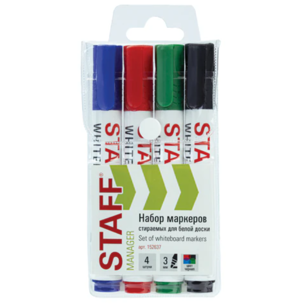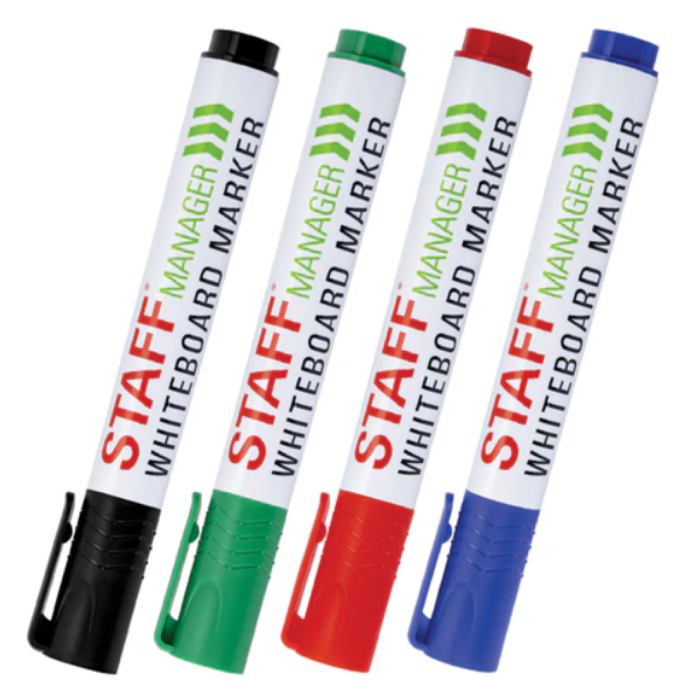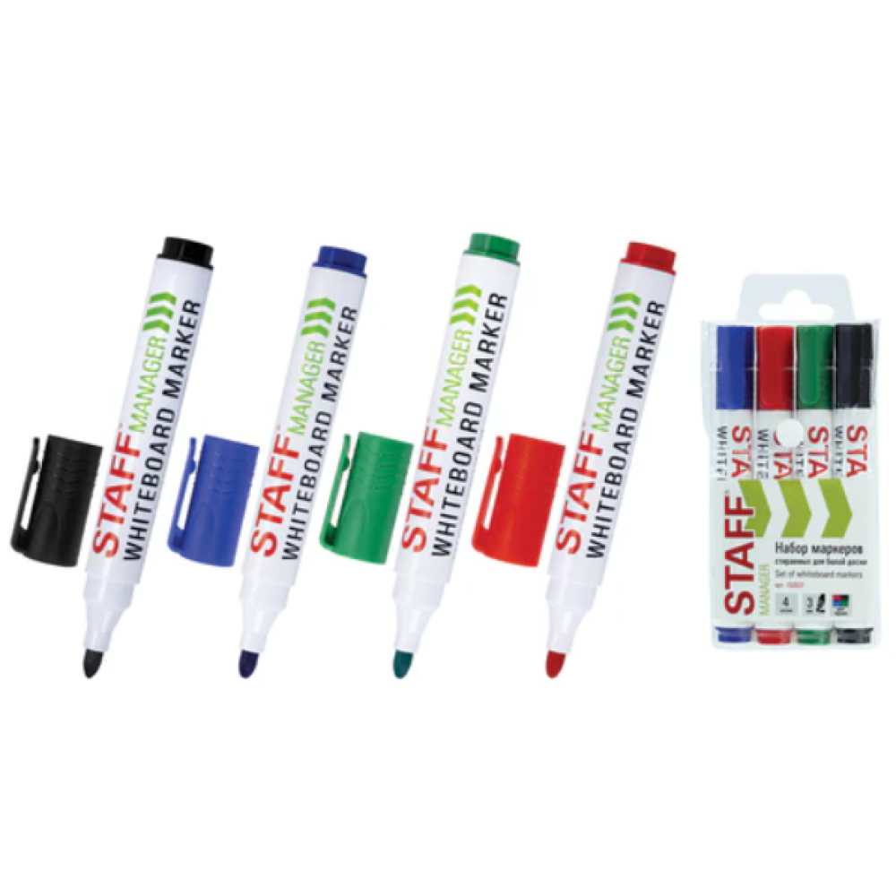 Набор маркеров STAFF "MANAGER" WBM-300 – это ваш ключ к красочным и структурированным презентациям. Четыре классических цвета (черный, синий, красный, зеленый) помогут выделить главное, систематизировать информацию и визуализировать ее. Набор из 4 маркеров предназначен для письма на всех типах магнитно-маркерных досок. Каждый маркер имеет круглый пластиковый корпус. Круглый наконечник каждого маркера обеспечивает толщину линии 3 мм, что гарантирует хорошую видимость текста и рисунков. Чернила на спиртовой основе отличаются высокой насыщенностью, мгновенно высыхают и легко стираются сухой губкой, не оставляя следов. Колпачок с клипом надежно фиксирует маркер и позволяет удобно хранить и переносить его. Цвет колпачка и чернил совпадает.