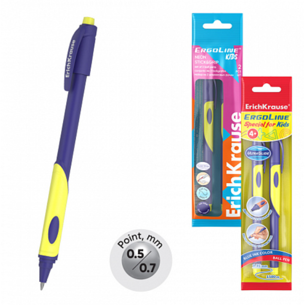 Эргономичная шариковая ручка с покрытием бархат, стандартным типом пишущего узла, заменяемым стержнем увеличенного объема и уникальной технологией суперскольжения. Ручка имеет непрозрачный матовый круглый корпус, треугольную эргономичную зону хвата с выемками для пальцев и вентилируемый колпачок. 5-канальный пишущий узел с диаметром шарика 0.5 мм в сочетании с чернилами пониженной вязкости обеспечивает мягкое и быстрое письмо без усилий. Благодаря увеличенному резервуару стержня длина непрерывной линии составляет 2000 м при толщине 0.25 мм, что является одним из лучших показателей в своей категории. Модель ErgoLine с резиновым хватом Неон 0.5 обладает великолепной эргономикой и рекомендована для дошкольников и школьников младших классов в качестве первой ручки.