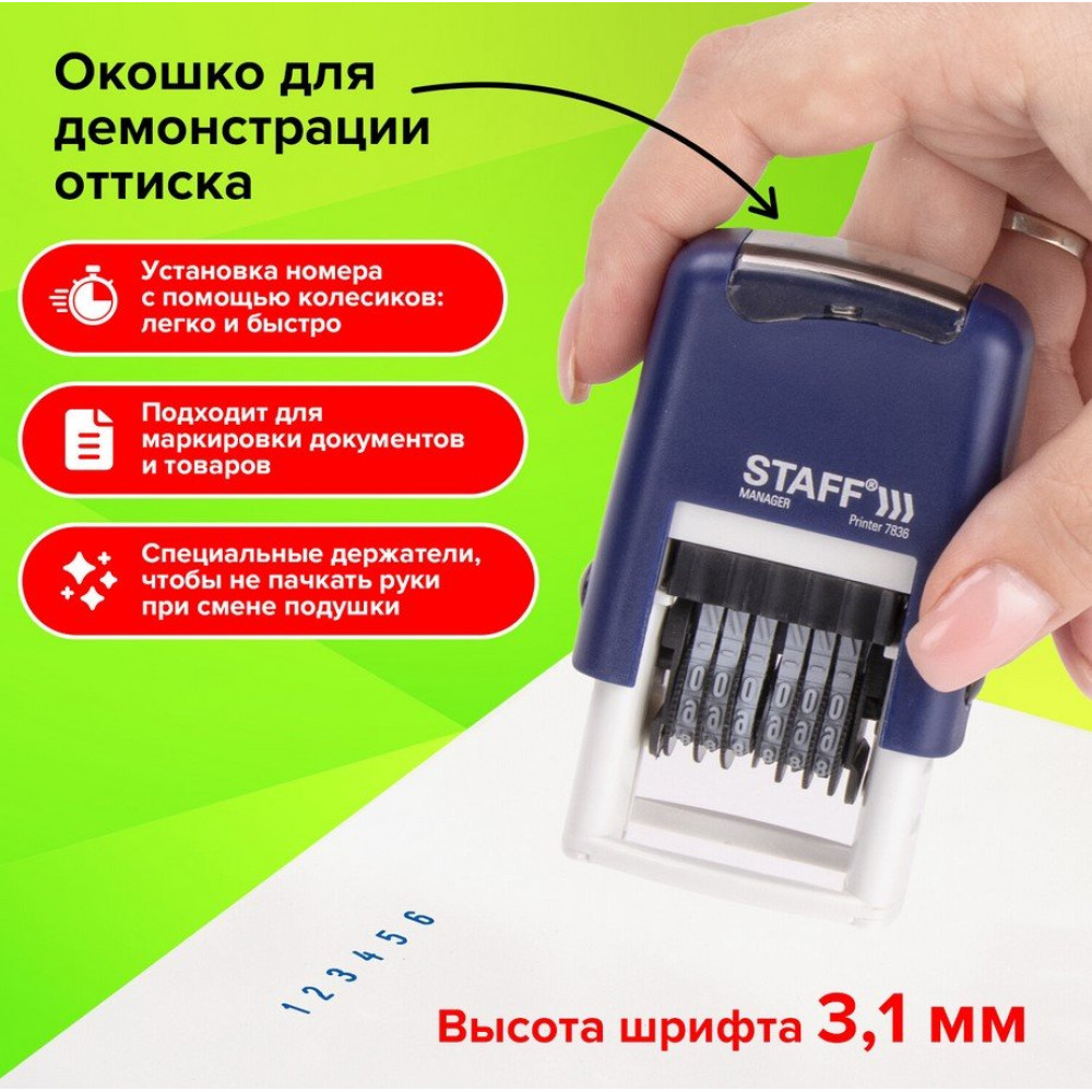 Нумератор Staff Printer 7836 - 3,1 мм - Оттиск номера