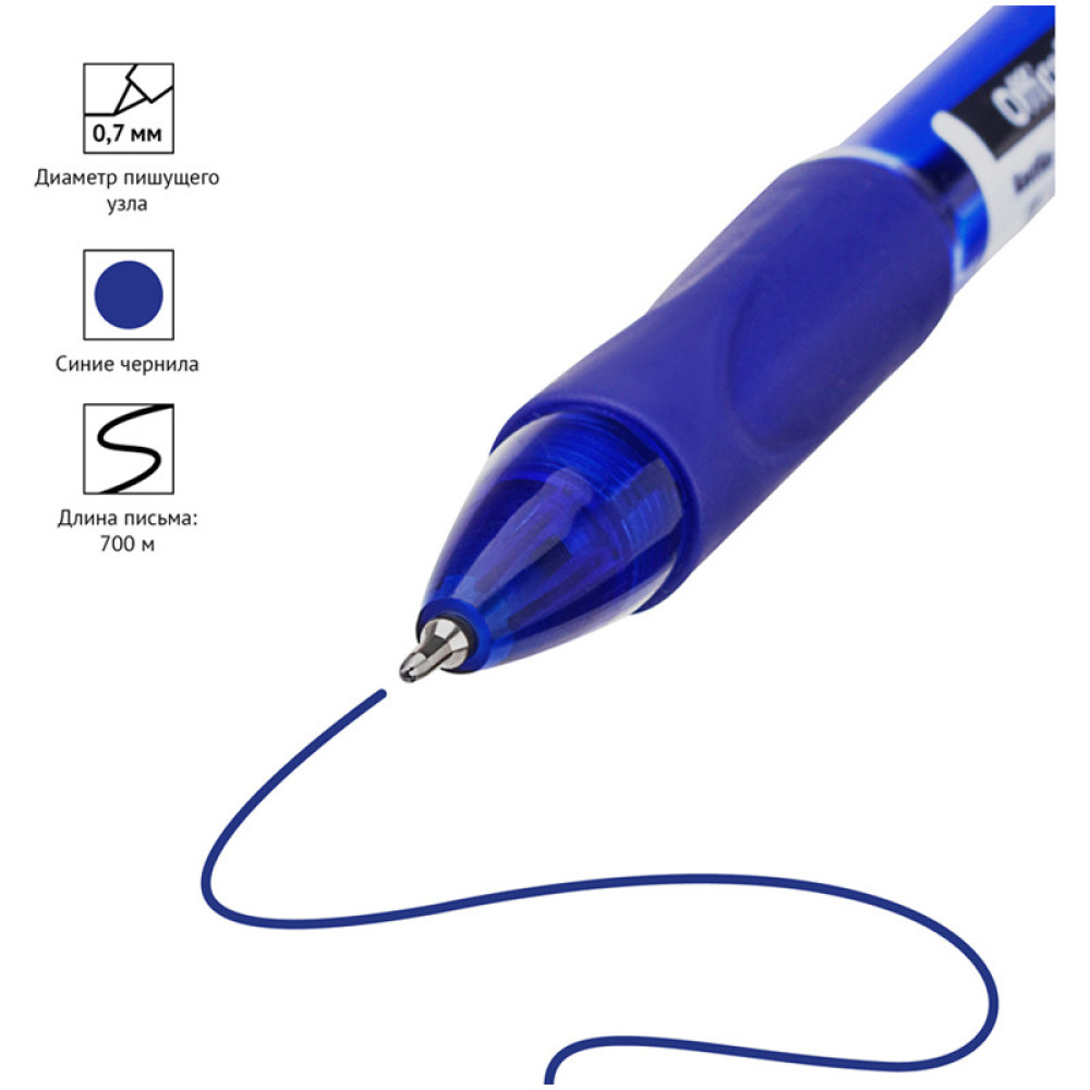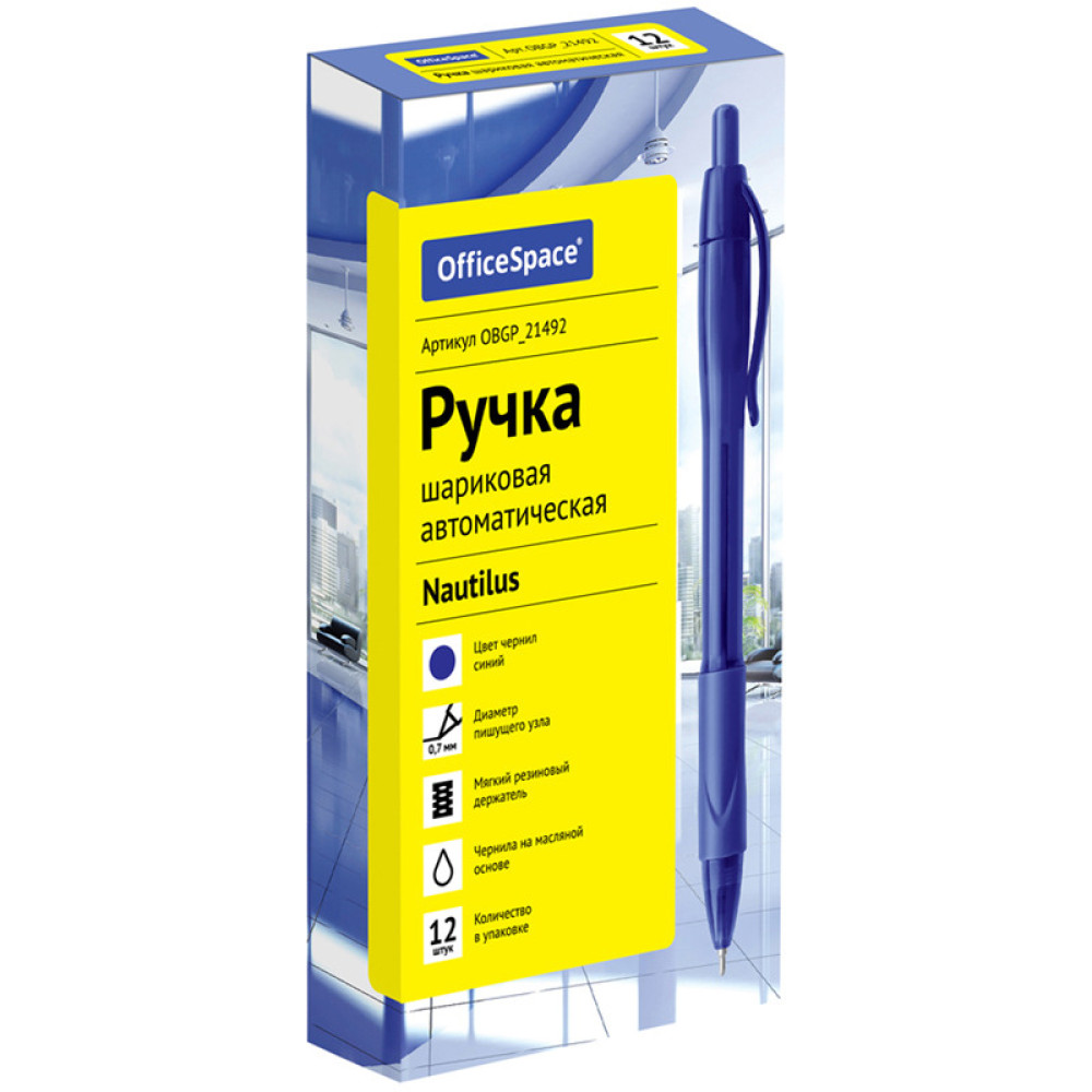 Шариковая ручка OfficeSpace "Nautilus" – отличный инструмент для ежедневного использования. Внутри пластикового корпуса – синие чернила на масляной основ, которые обеспечивают мягкое письмо. Клип помогает закрепить ручку на одежде или ежедневнике. На зоне хвата располагается резиновый грипп для препятствия выскальзыванию из рук. Благодаря диаметру пишущего узла 0,7 мм подходит для любого стиля письма.