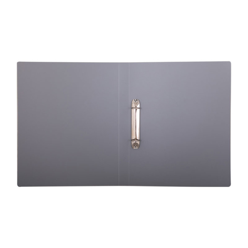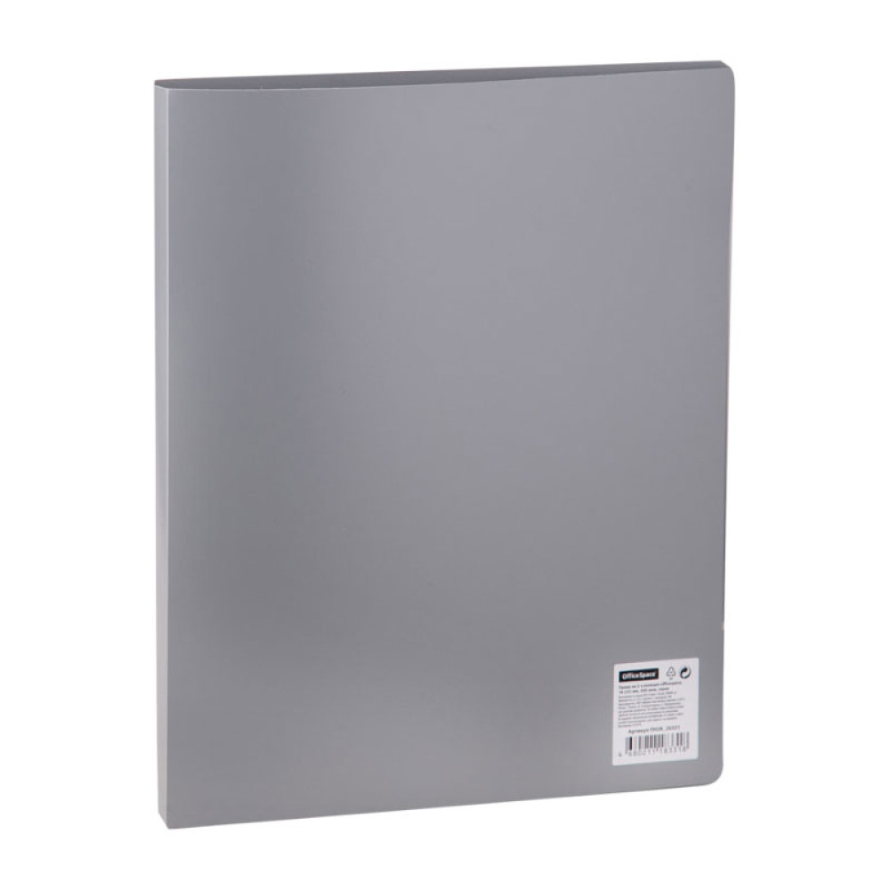 Папка на 2 кольцах OfficeSpace серого цвета формата А4 из высококачественного пластика. Кольцевой механизм надежно держит документы. Вмещает до 250 листов.