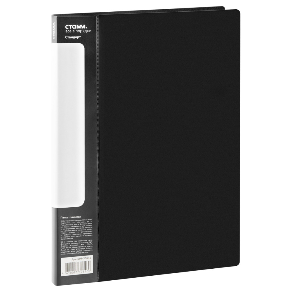 - Папка с боковым зажимом Стамм Стандарт - 17 мм - А4 - 700 мкм - Черная