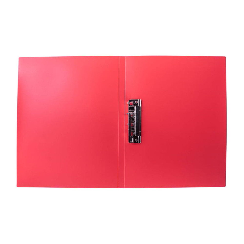 Пластиковая папка OfficeSpace красного цвета с металлическим зажимом, который надежно фиксирует документы, не повреждая их. Удобно хранить и переносить бумаги, а также защищать их от