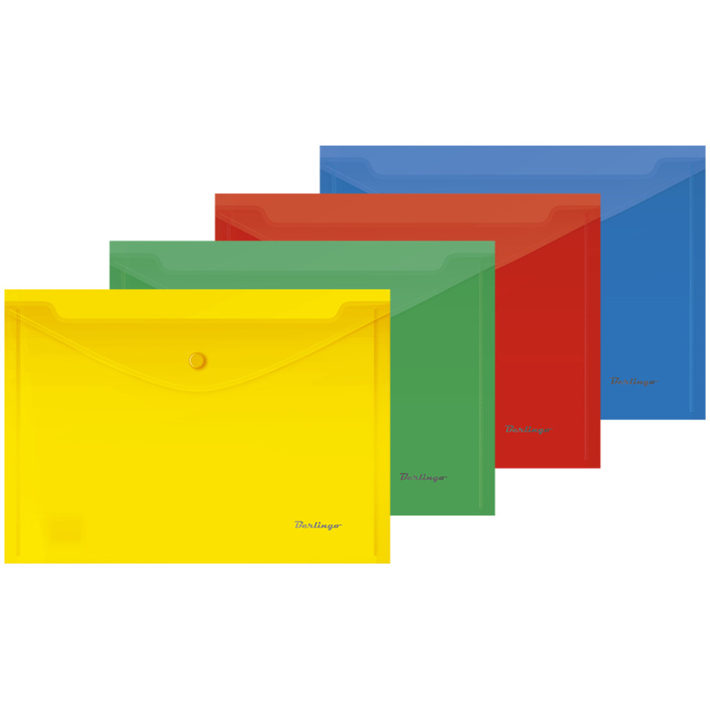 - Папка-конверт Berlingo с кнопкой - А4 - 180 мкм- Цвета ассорти