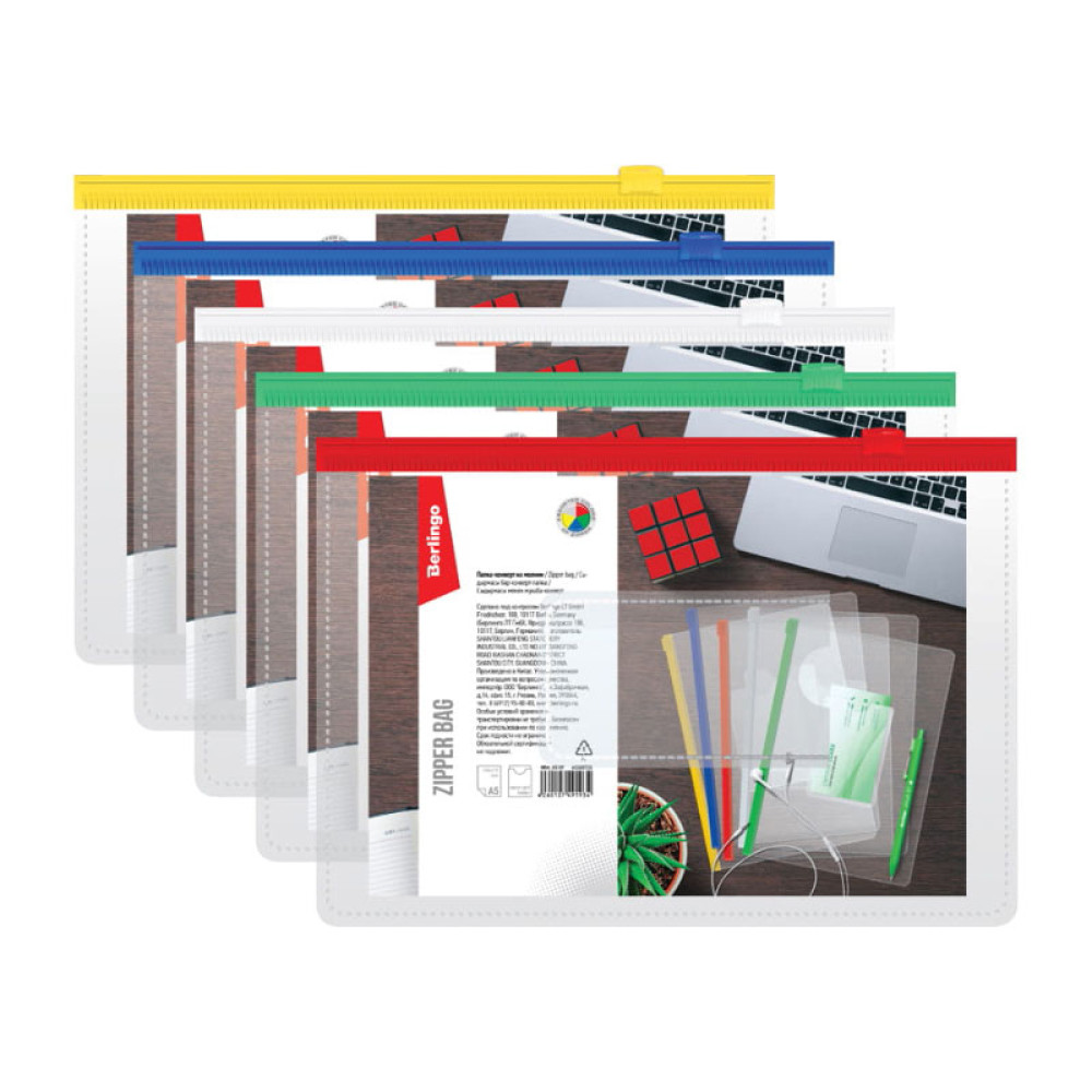 - Папка-конверт Berlingo - А5 - Ассорти - На молнии
