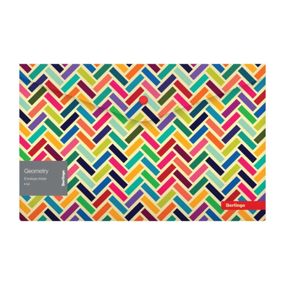 Папка-конверт Berlingo "Geometry" из пластика с рисунком на кнопке, папка горизонтальной
