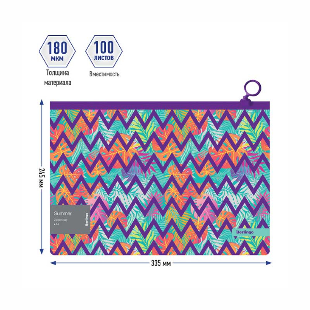 - Папка-конверт Berlingo Summer - На молнии - А4 - 180 мкм