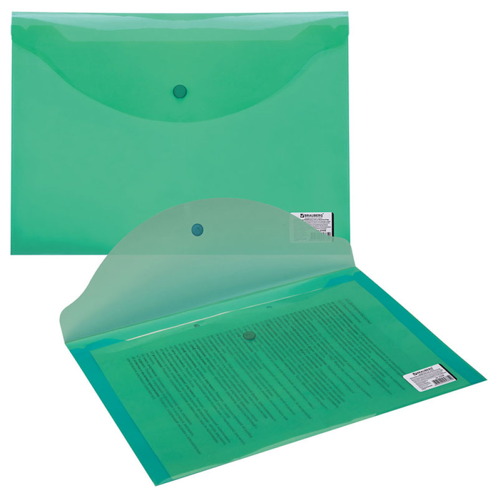 - Папка-конверт Brauberg на кнопке - 150 мкм - А4 - Зеленая