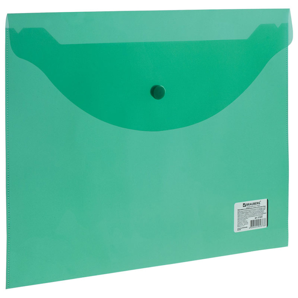 Папка-конверт Brauberg на кнопке - 150 мкм - А4 - Зеленая
