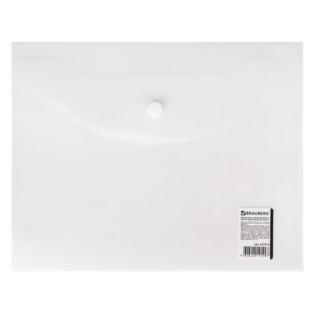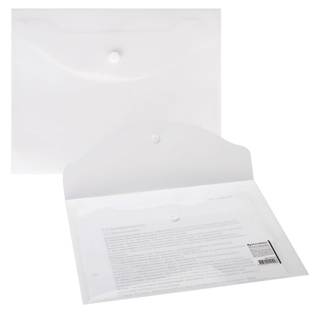 - Папка-конверт Brauberg на кнопке - 180 мкм - А5 - Прозрачная
