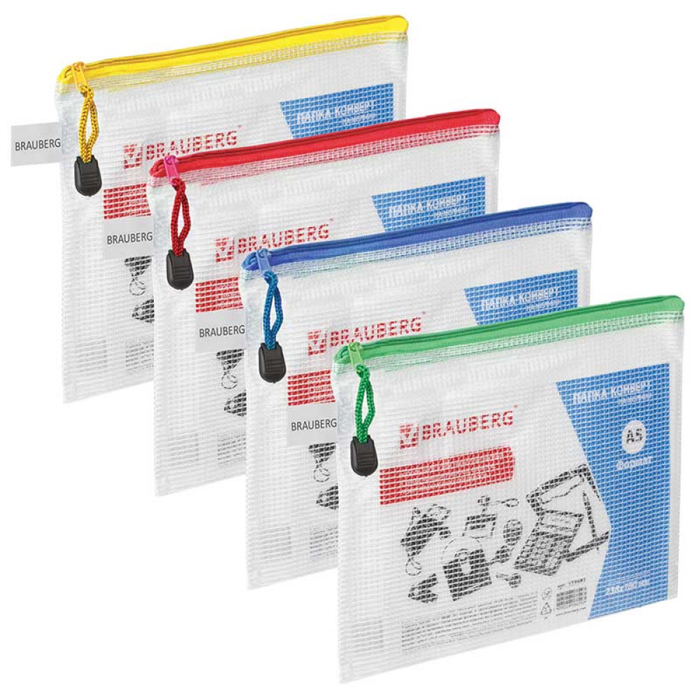- Папка-конверт Brauberg Segment на молнии - 220 мкм - А5 - Ассорти
