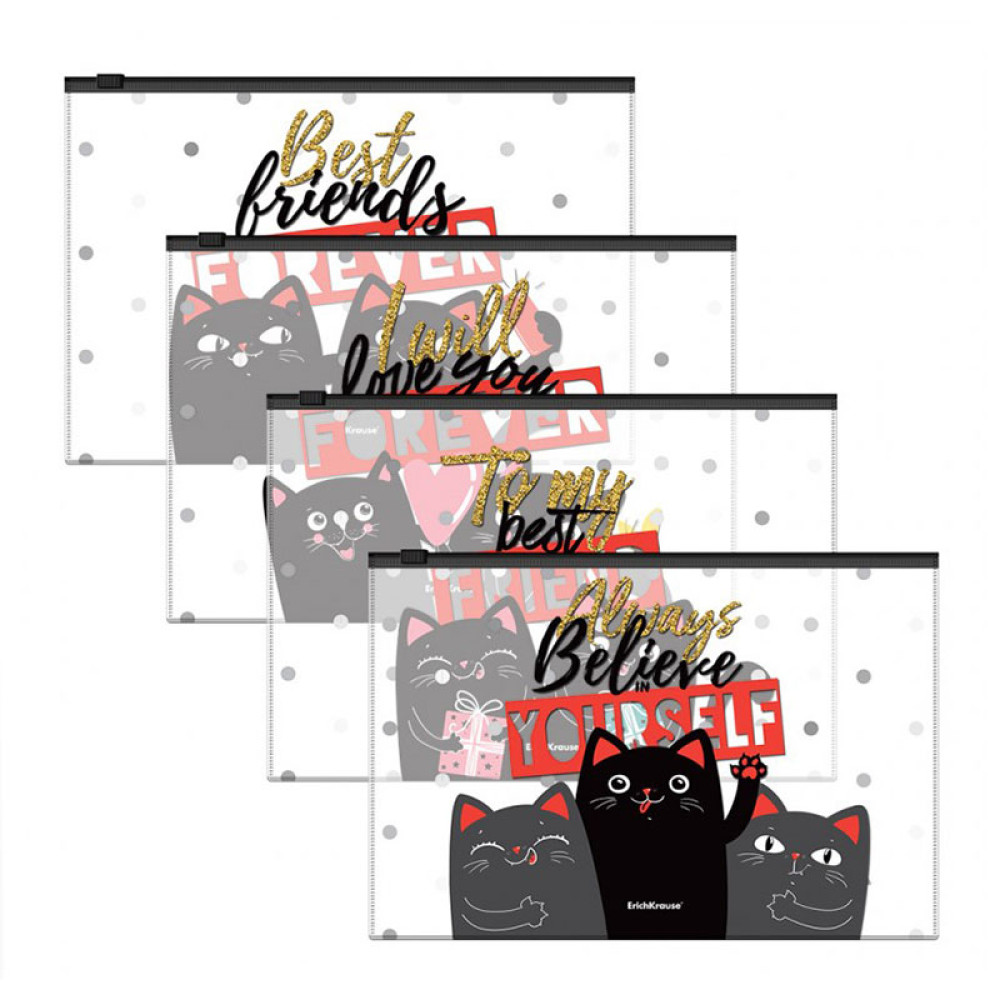 Папка-конверт Erich Krause Feline Friends - ZIP-молния - В5 - Ассорти
