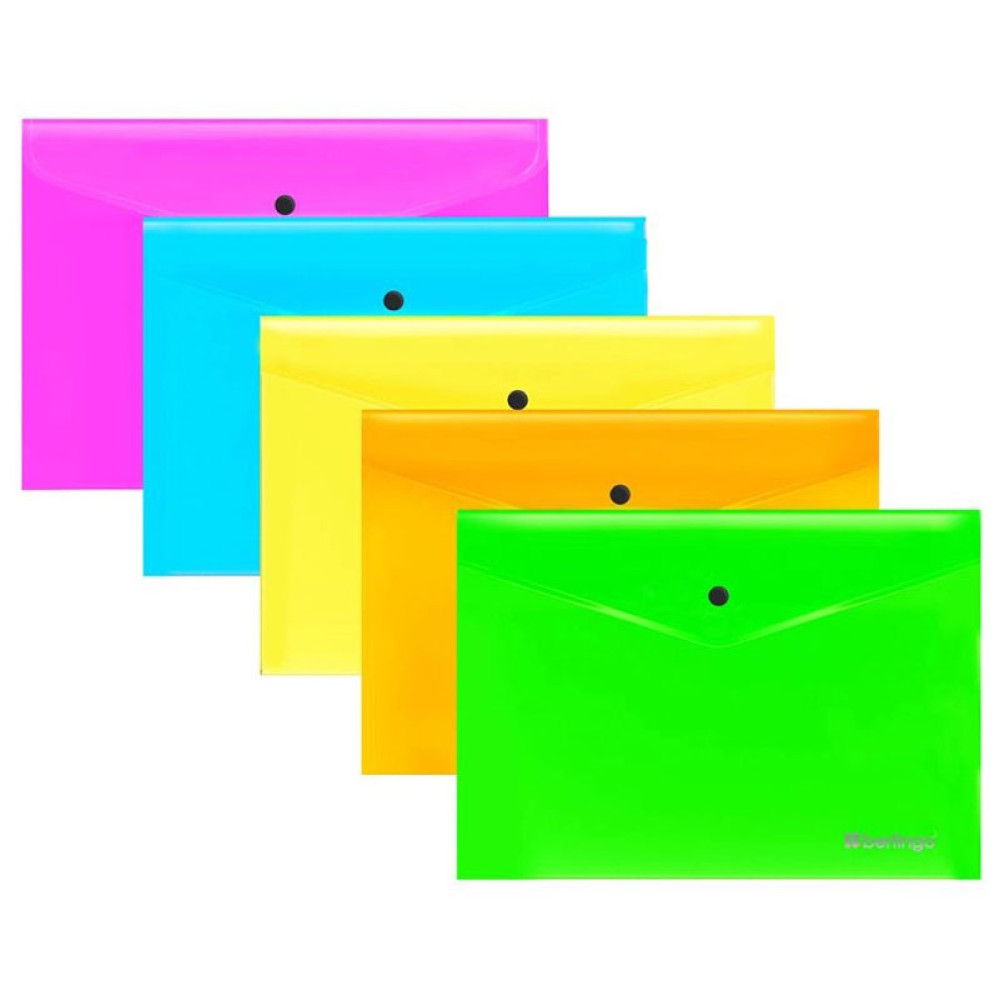 Папка-конверт на кнопке Berlingo Neon - А4 - Ассорти