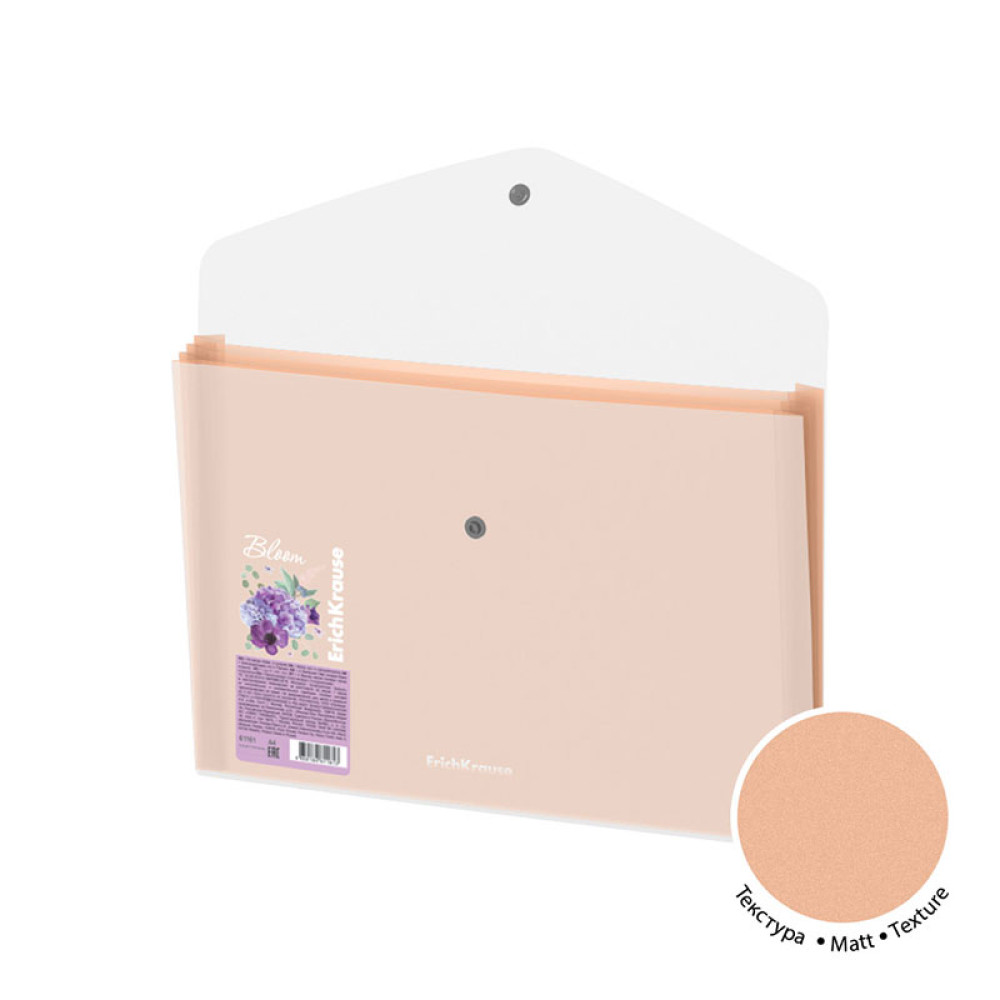 - Папка-конверт на кнопке Erich Krause Matt Pastel Bloom - А4